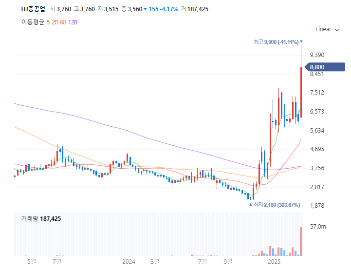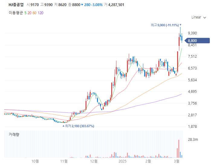 HJ중공업 주가 정보